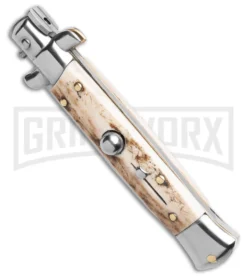 The Anomaly automatic knife is a budget version of the popular Italian stiletto automatic knife. Its handle is outfitted with stainless steel bolsters, push button, and sliding safety. Brass pins and liners add a classic touch to the design. The stainless steel blade comes in a spectrum finish with a plain edge. This Anomaly model offers everything you love about Italian stilettos without the imported price tag. Keep in mind this is more of a novelty or collection piece and not intended for hard EDC use.