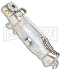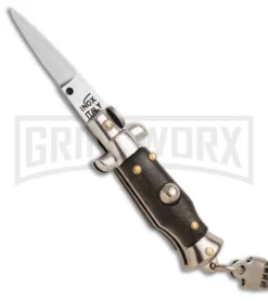 SKM 4″ Italian Stiletto Keychain Stag Automatic Knife – Satin Plain