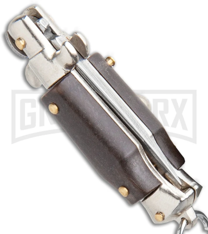 Super cool key chain stilettos really work. Made in Italy. Brown acrylic handles. These are very small! The perfect gift idea for anyone who loves Italian knives.