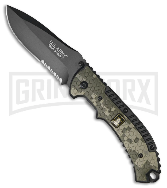 US Army Soldier Digi Camo Spring Assisted Knife – Black Serr