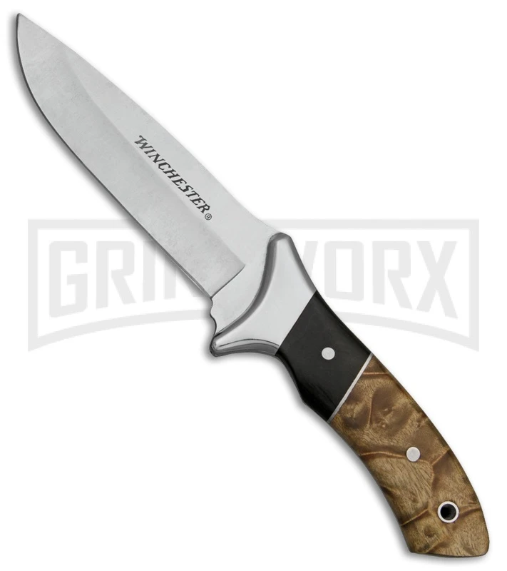 Winchester Seasoner Brown Pakkawood Fixed Blade Knife – Satin Plain